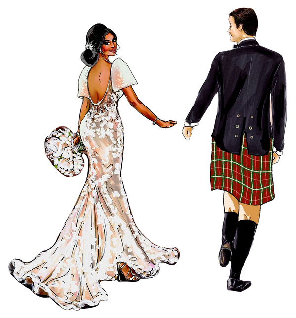 Photo edited using Krita. I edited the original photo according to the customers attire request, Filipiñana for the Filipina bride and traditional Scottish attire for the groom.