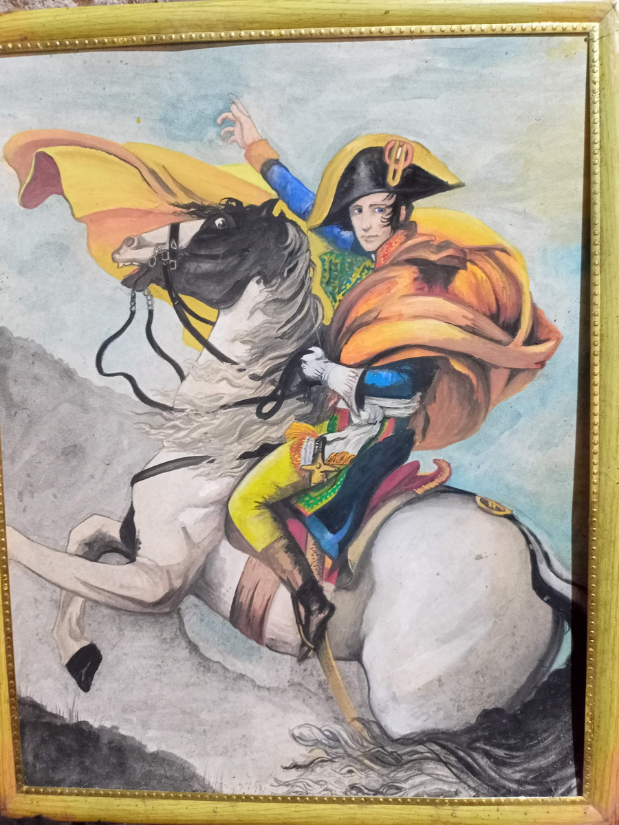 Oil on illustration board equestrian portraits of Napoleon Bonaparte painted by the French artist Jacques-Louis David.